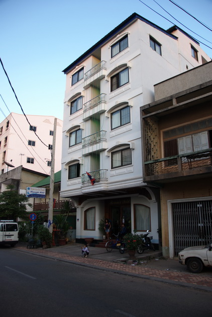 The Riverview Hotel where I stayed. My room was a single room on the top floor. The men's and women's washrooms/showers were outside the room and there was a deck used for drying sheets during the day. I had the whole floor to myself.